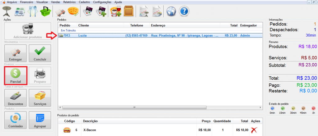 Em seguida clique em Parcial, para poder visualizar a forma de pagamento.