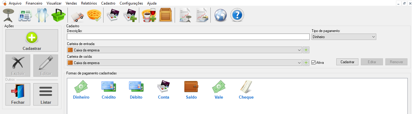 Olá pessoal hoje iremos auxiliar a cadastrar Formas de Pagamento e Cartões no sistema.