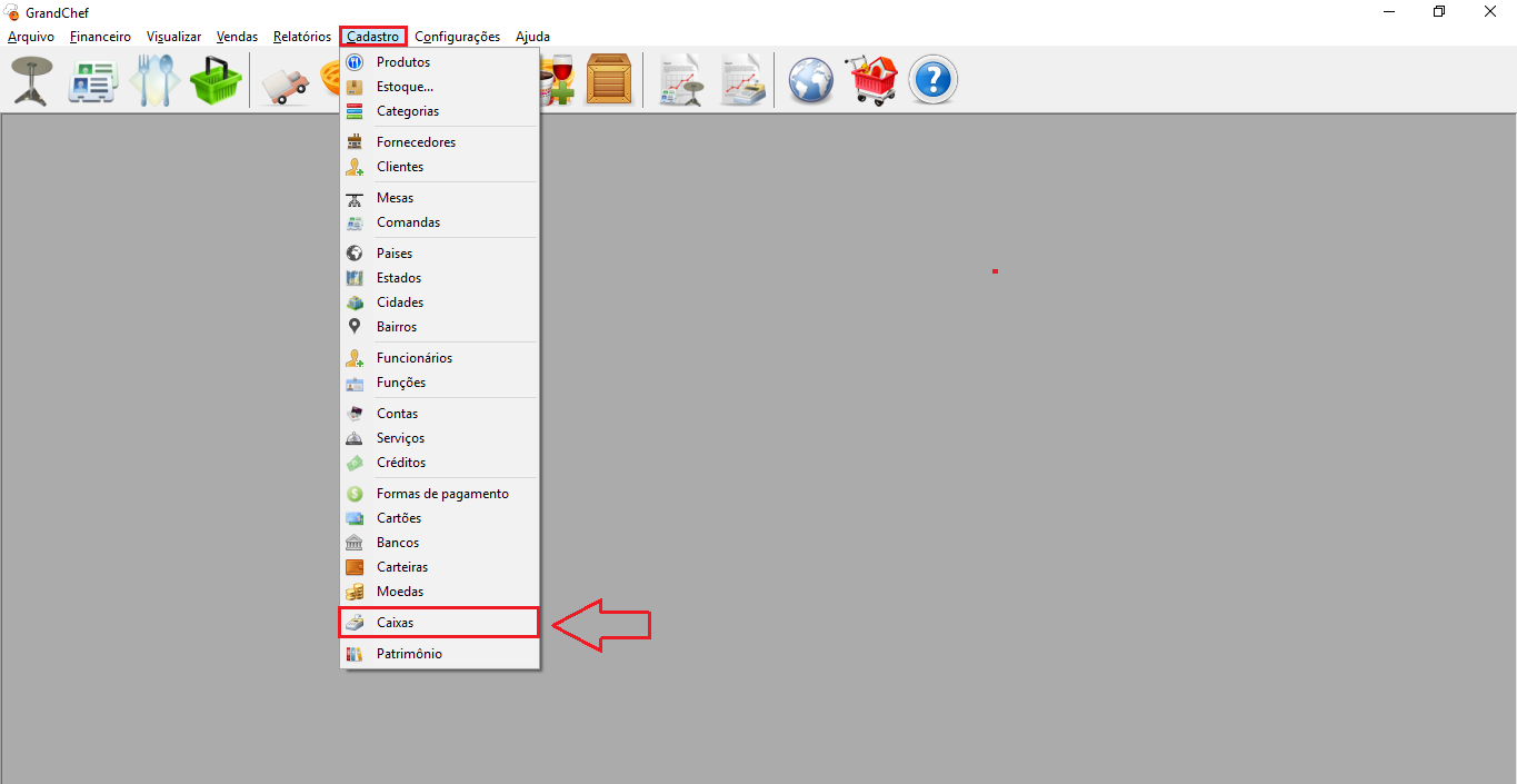 Vamos lá! Primeiramente acesse a aba “Cadastro” > “Caixas”.