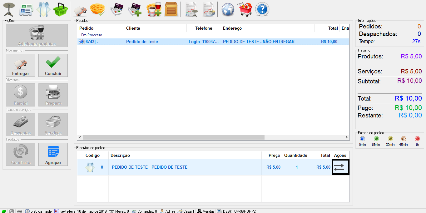 Quando o pedido da Delivery Much chegar no GrandChef e não estiver associado, irá aparecer duas flechas logo ao lado do produto.