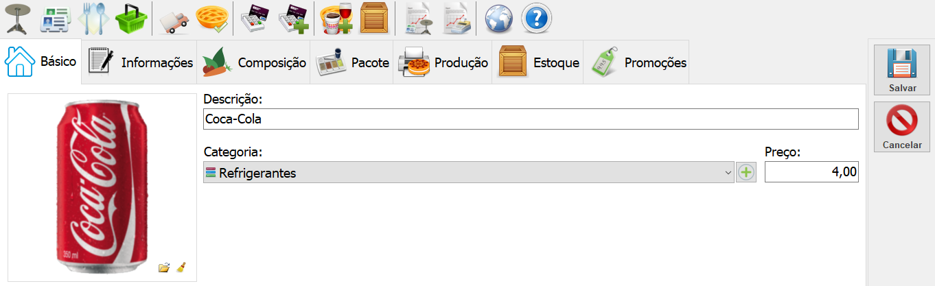 Vá na aba “Produtos”, clique em criar novo produto, informe o nome da promoção e o valor, na aba composição habilite a opção “Informar Composição” e clique em salvar.