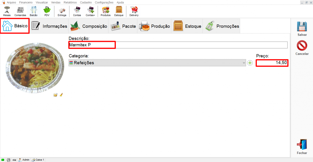 Após isso você pode cadastrar o restante dos itens que irão fazer parte de sua refeição, você pode seguir o exemplo acima ou fazer a duplicação do produto e só alterar o nome.
