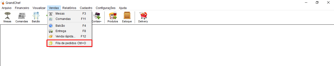 Primeiro abra a fila de pedidos em Vendas > Fila de pedidos