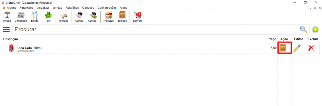 Irá abrir uma tela onde já estará filtrada pelo código e nome do produto selecionado.