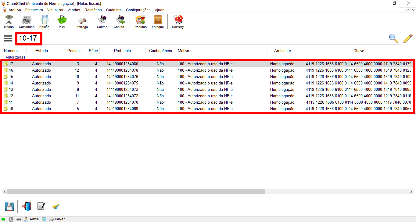 Fazendo esse procedimento o sistema irá filtrar as notas fiscais pelo intervalo que foi informado.