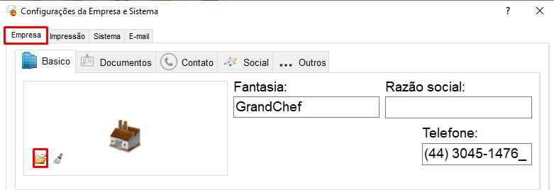 E insira a logo (imagem) da empresa que está na sua maquina, clicando na “pasta”. Como na foto abaixo.