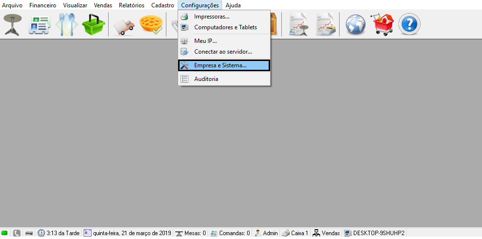 Primeiramente, abra o GrandChef, clique em “Configurações” > “Empresa e Sistema”.