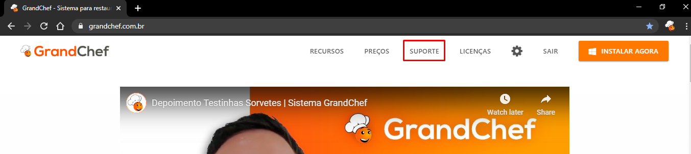 Você pode acessar através do site do GrandChef clicando na aba de “SUPORTE”.