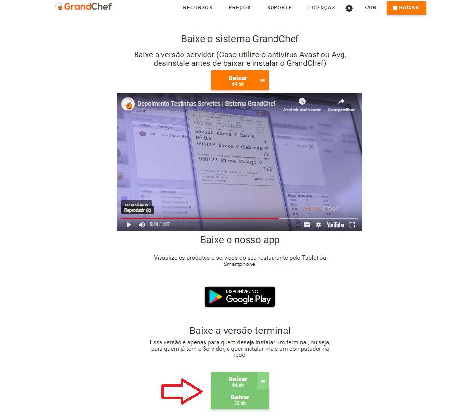 Para instalar o GrandChef terminal, e utilizar o GrandChef em dois computadores, Acesse nosso site >> https://www.grandchef.com.br/downloads/grandchef e baixe a versão Terminal localizada na parte de baixo do site