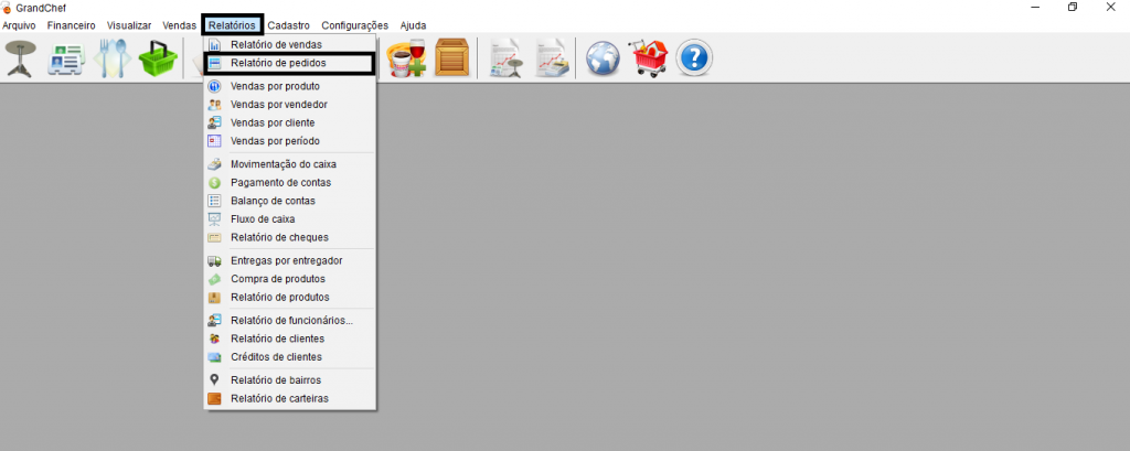“Relatórios”, e em seguida iremos selecionar a opção de “Relatórios de pedidos”.