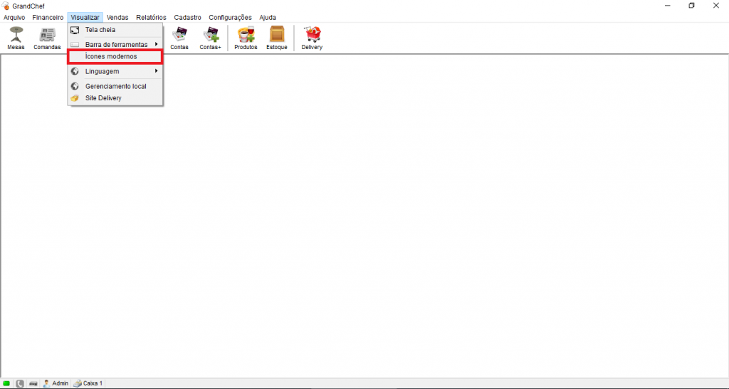Mas caso queira começar a utilizar os novos ícones do GrandChef, basta realizar o mesmo procedimento Na aba “Visualizar” > mas desta vez, marcando a opção de “ícones modernos”.