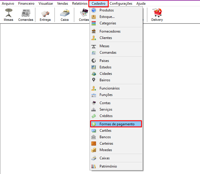 Para cadastrar a forma de pagamento Pix, acesse: Cadastro > Formas de pagamento