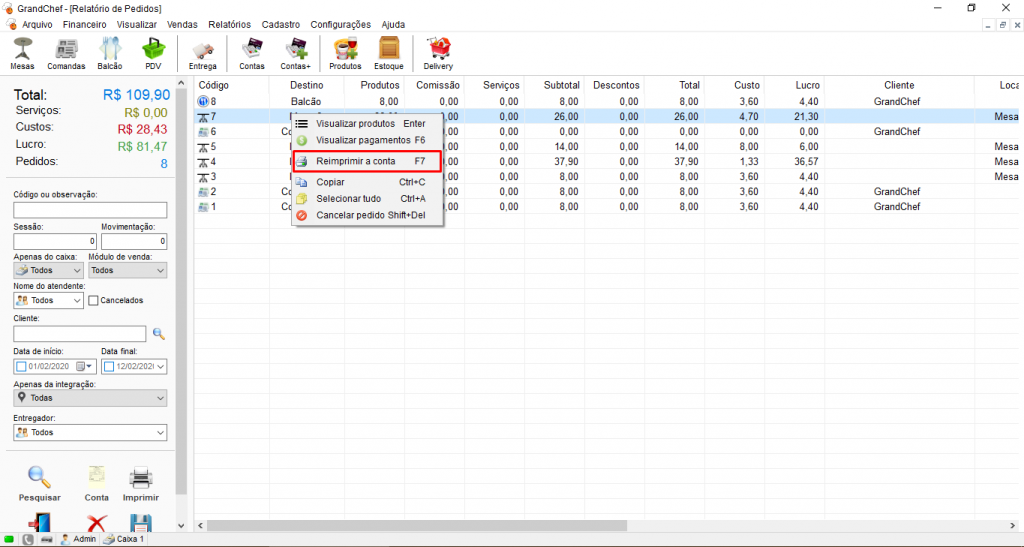 Olá pessoal, nesse tutorial iremos a aprender a como reimprimir um pedido e cancelar um pedido concluído no GrandChef.