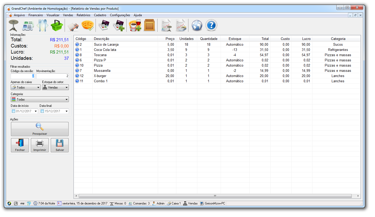 - Para visualizar todas as vendas de produtos, clique no menu Relatórios->Relatório de vendas por produtos escolha a data e clique em Pesquisar, para visualizar somente de um dia, clique no menu Relatórios, clique 2 vezes em cima de um produtos para visualizar todas as vendas desse produto.