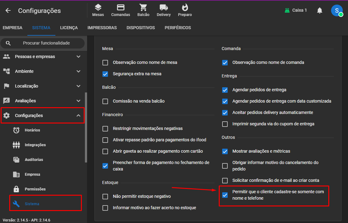 E marque a seguinte opção: Permitir que o cliente cadastre-se somente com nome e telefone